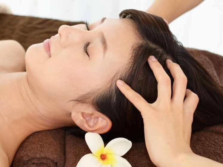 (仰向けで頭、顔、首、肩、手までしっかりケア)