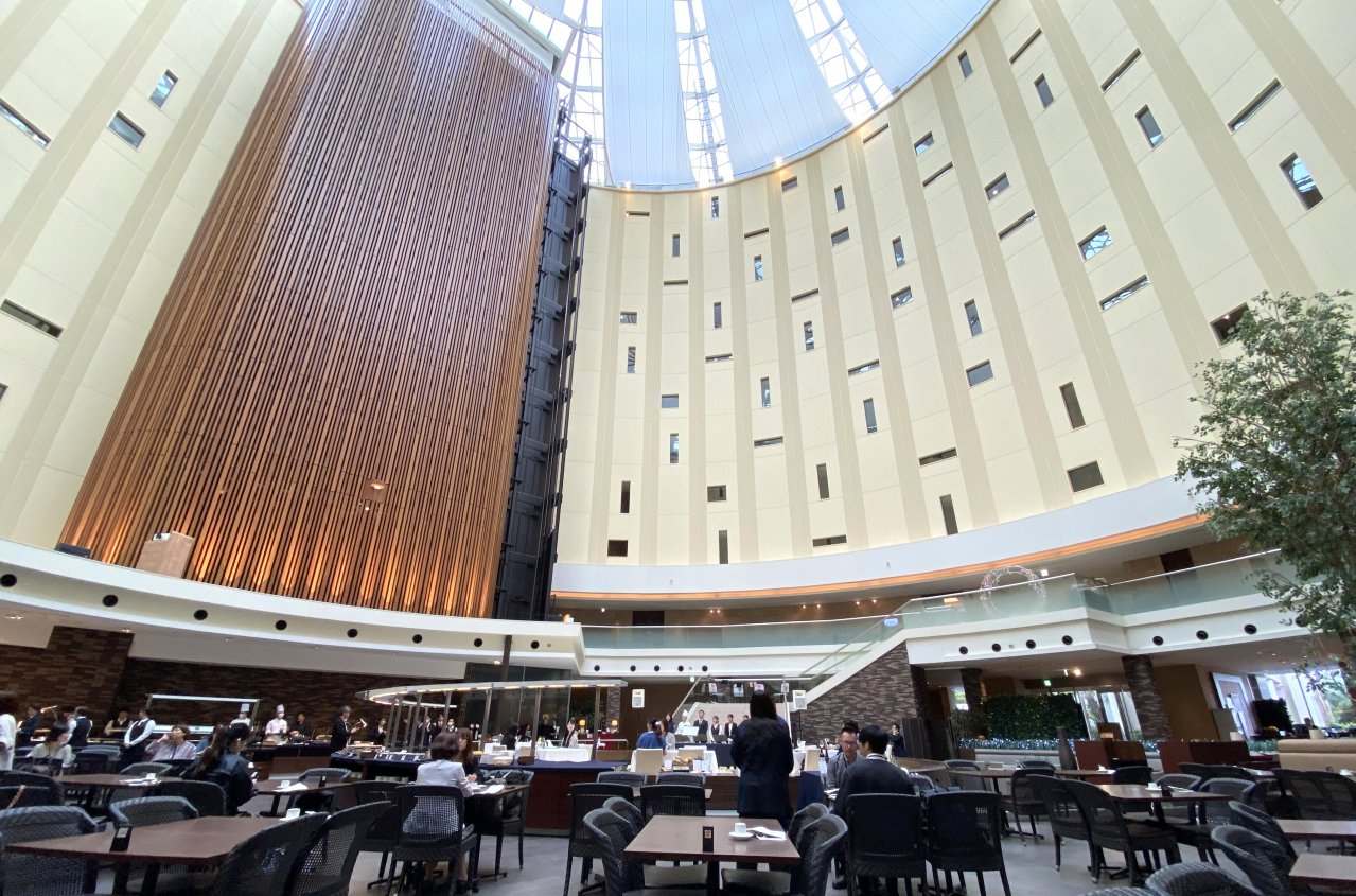 吹き抜けのアトリウムはとても開放的!円形のホテルならではの景色が楽しめます。
