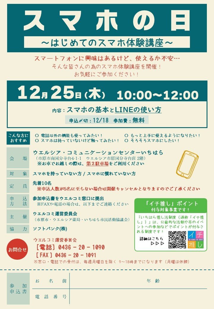 申込方法:12月18日(木)までに電話(ウエルコミ:0436-20-1090)