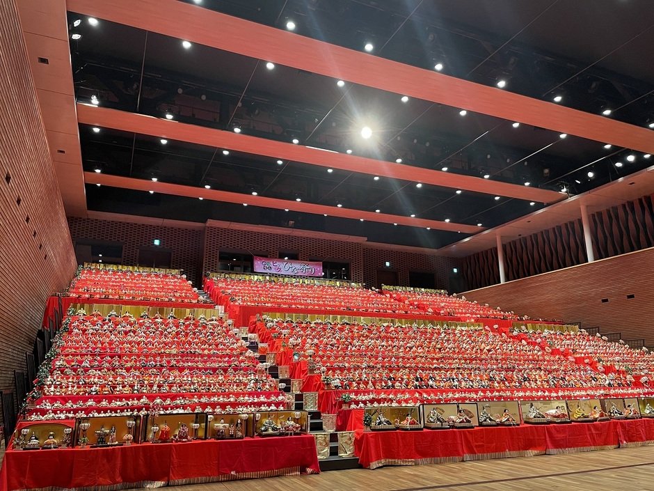 キュステ大ホールの特別雛壇や遠見岬(とみさき)神社の階段雛は圧巻!