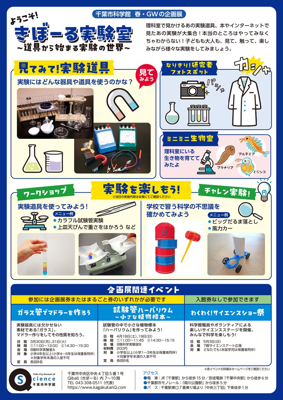千葉市科学館 春・GWの企画展「ようこそ!きぼーる実験室~道具から始まる実験の世界~」