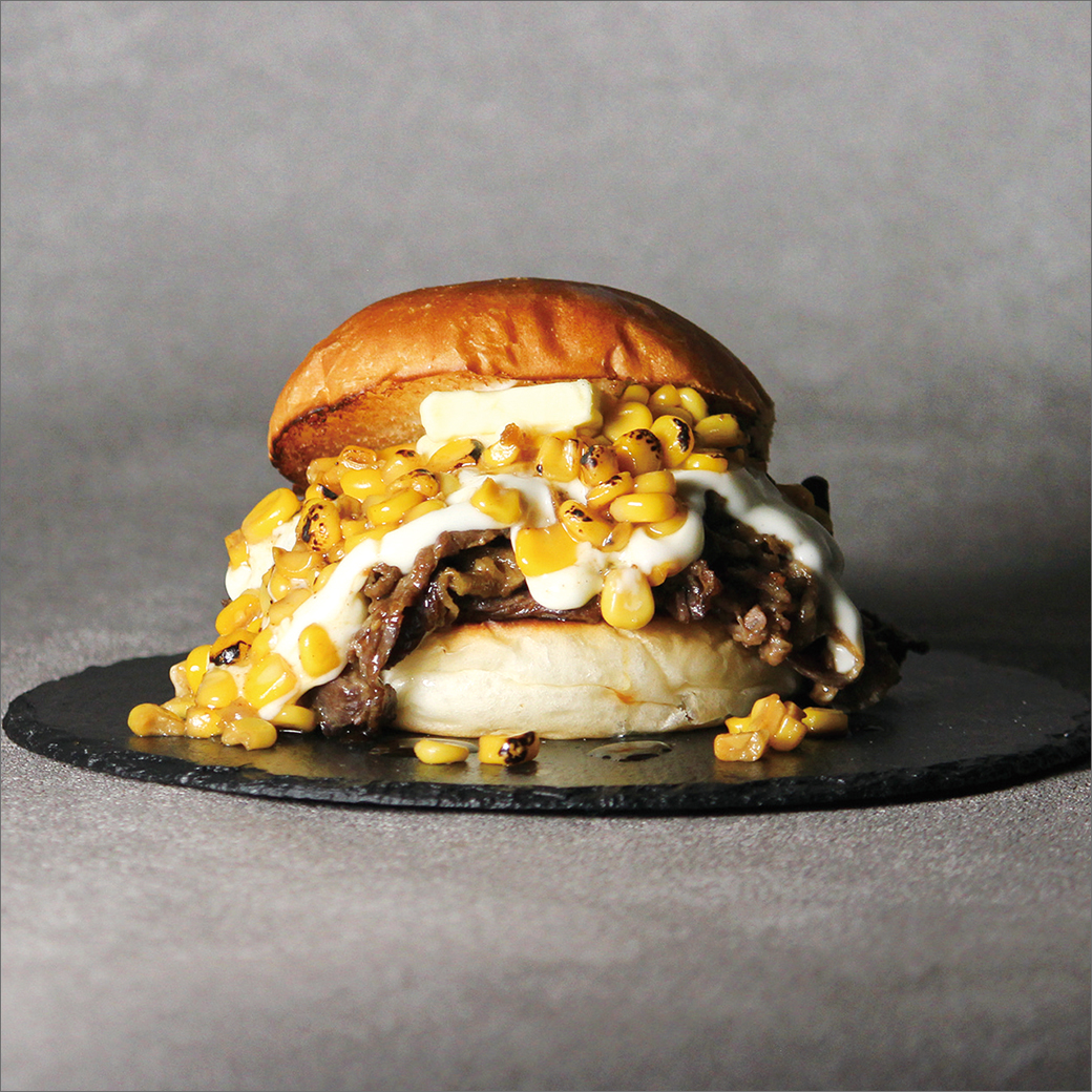 かみふらの和牛と北海道産焼きとうきびのチーズステーキバーガー 1,458円(1個)※各日限定50個