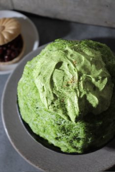 店舗がリニューアルし、新メニュー「濃厚宇治抹茶かき氷」が登場。こちらは最高 品質の純氷を使い、京都で270年以上歴史のある「カネ七畠山製茶」の高級有機抹茶を贅沢に使用。マスカルポーネチーズ、生クリーム、抹茶などで作ったコクのあるクリームをたっぷりのせ、別添えの小豆が入った最中をお好みのタイミングでかき氷に割り入れて楽しめる。 八ヶ岳天然氷を使用したかき氷メニューもあるのでぜひ!