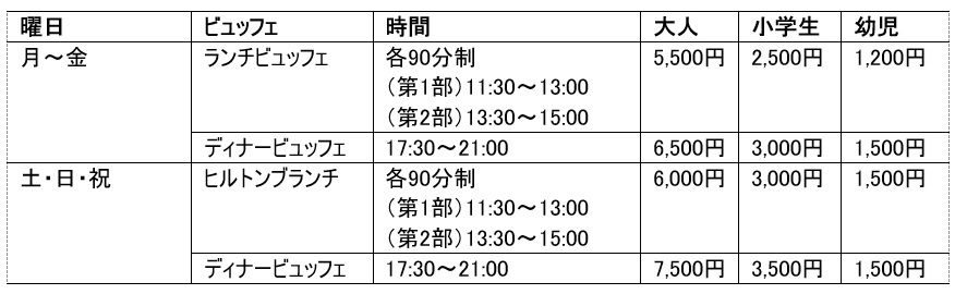 【ランチビュッフェ・ヒルトンブランチ限定】