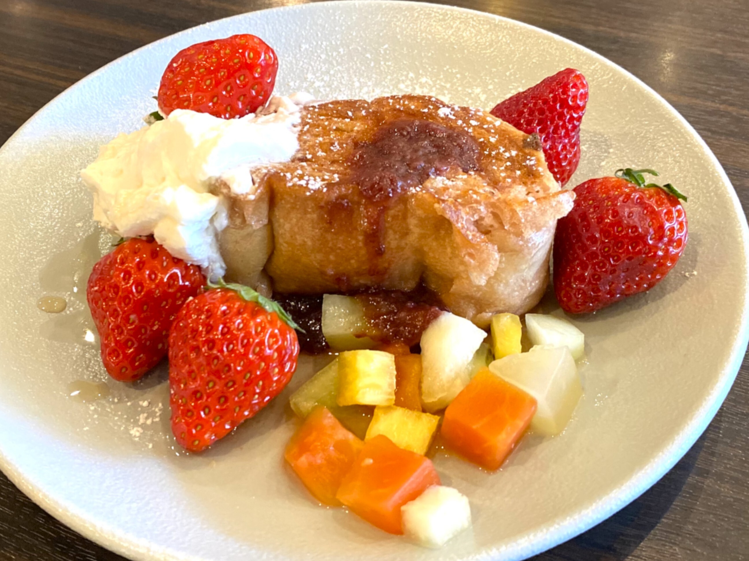 「あまおう」「紅ほっぺ」「とちあいか」「とちおとめ」「きらぴ香」など、ブランドいちごからその日最も状態の良い2種を日替わりで提供。そのままで味わうのはもちろん、フレンチトーストやソフトクリームにトッピングして贅沢にオリジナルのいちごスイーツを楽しむのもおすすめです。