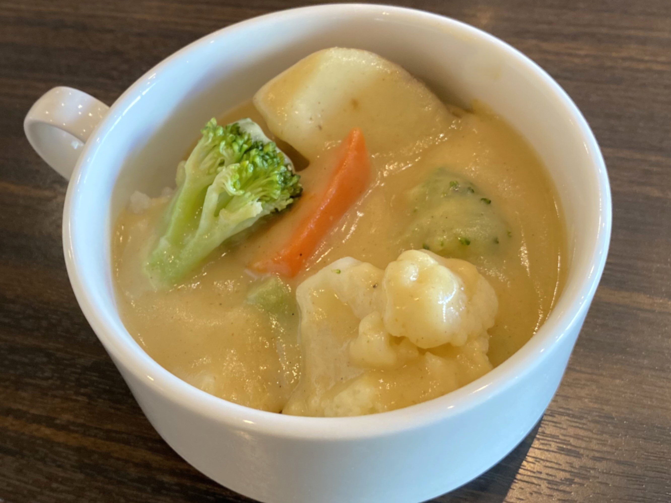 白いカレーに温野菜を合わせて一緒にどうぞ!