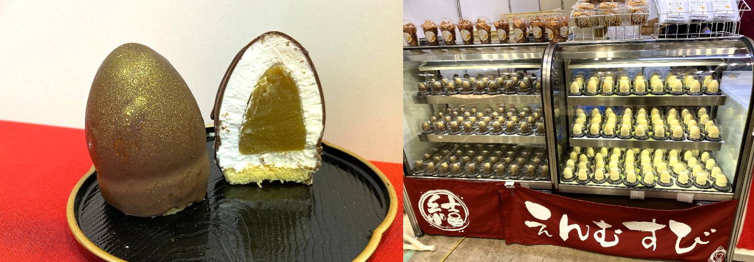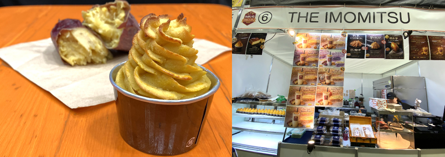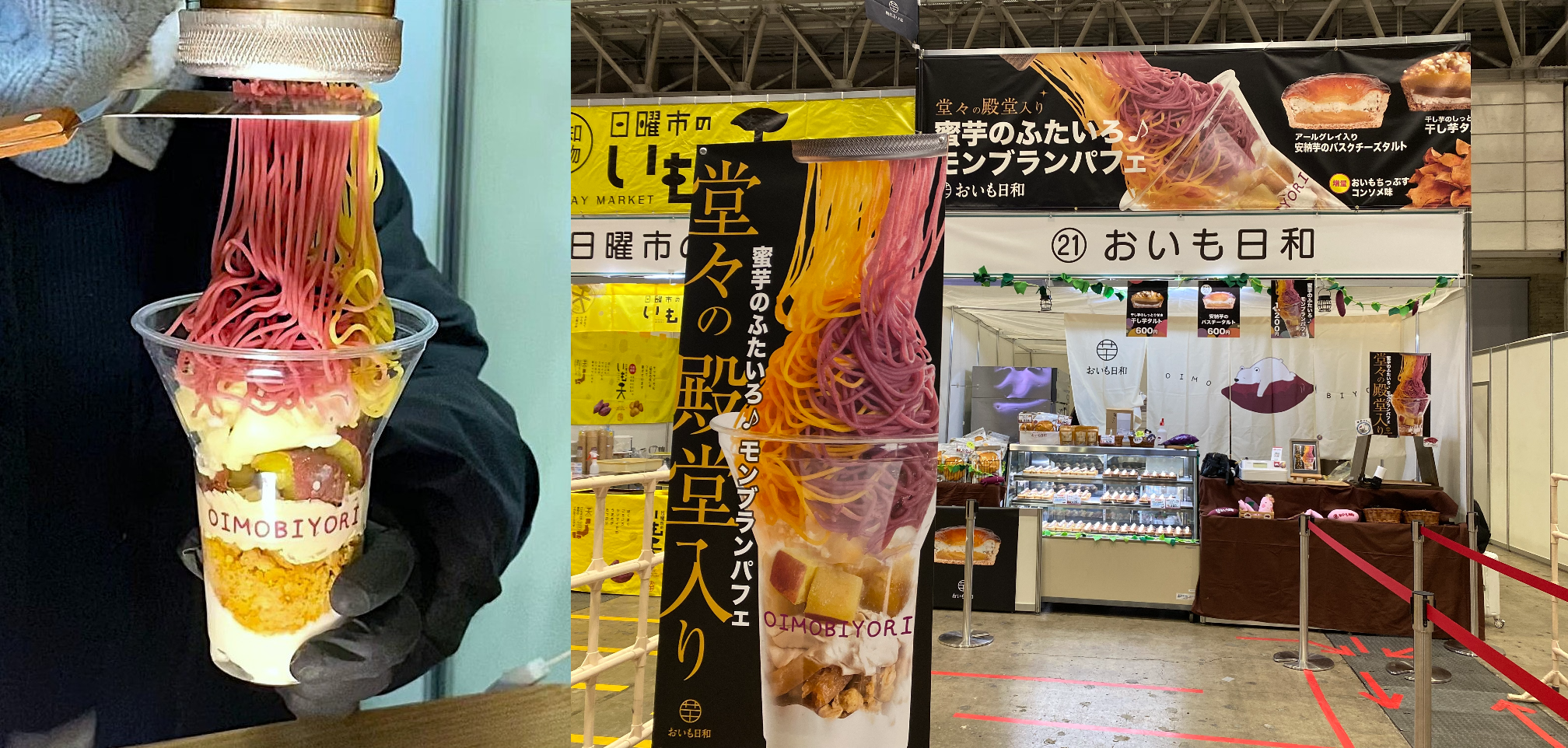 長野県のさつまいも専門店より、長野県産の蜜芋を使った2色の「ふたいろ♪モンブラン」を今回はバージョンアップし、来場者人気投票「映え」部門5連覇のパフェにて提供