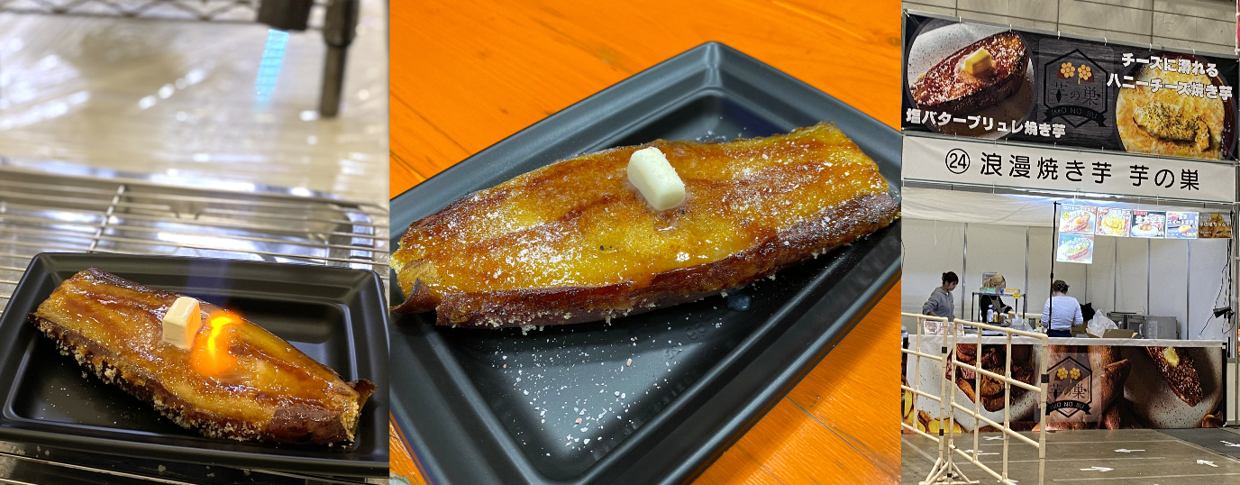 大阪・なんばに本店を構え、創作焼き芋を提供。焼き芋の甘さに、三温糖のキャラメリゼの苦みと香ばしさ、さらにバターのコクと岩塩の塩味が重なり、何倍にもなって美味しくグレードアップ!