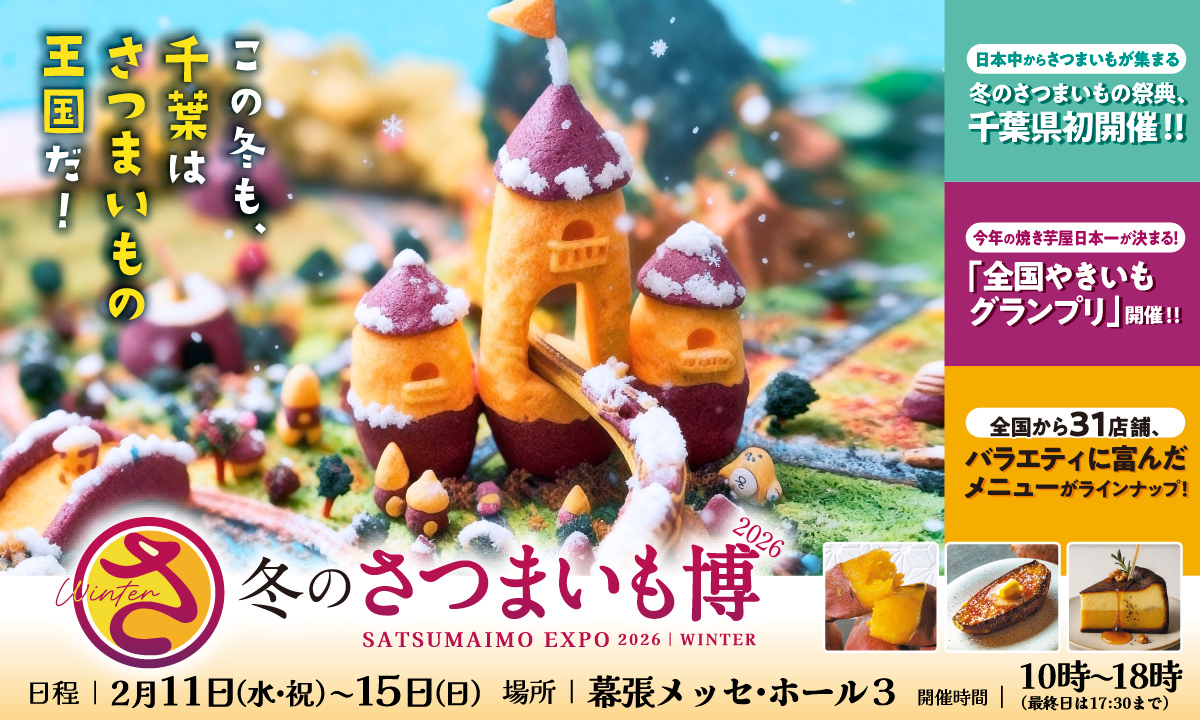 日本各地から自慢の焼き芋をはじめ、さつまいもスイーツやフードメニューが集結する「冬のさつまいも博」が2月11日(水・祝)より開催!全300品以上の人気店メニューがラインナップし、さつまいもの魅力を存分に楽しめるのはもちろん、「冬のさつまいも博」限定メニューやバレンタインにおすすめのチョコレートアレンジメニューも登場するのでお楽しみに♪